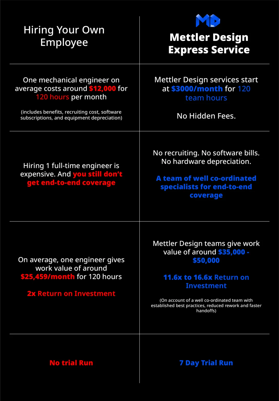 Having a responsible and reliable team would help you work better on other aspects of the business knowing that your design and engineering portion is in good hands.